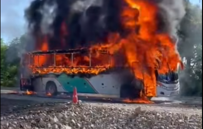 Ônibus que fazia transporte de funcionários da Stara incendeia na BR 386