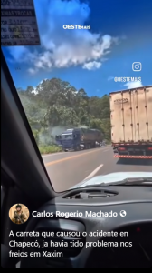 Elder disse que a versão não corresponde aos fatos apurados até o momento. Isso porque o caminhão já apresentava falhas mecânicas antes de chegar a Chapecó.