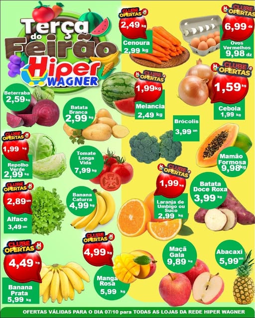 Hiper Wagner – Terça feira(07),Feirão de frutas e verduras