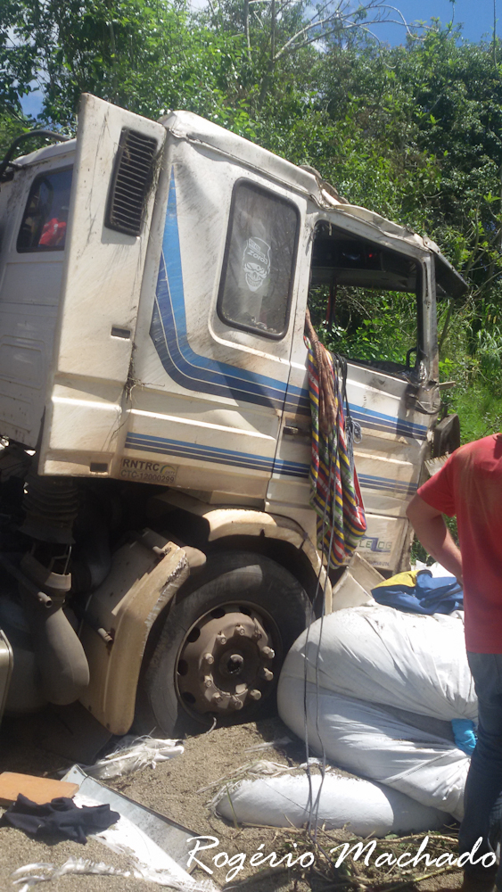 km 109,2, uma saída de pista com capotamento de um caminhão Scania de Placas