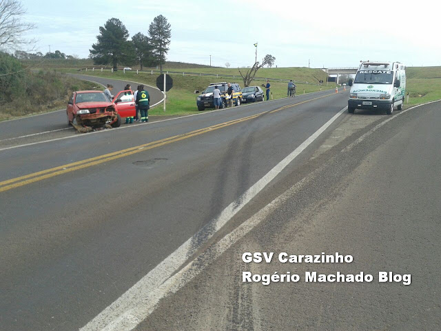 Caminhão placas ATX4522 de Cascavel PR ocupado por José Pedro dos Santos 42 vinha sentido carazinho soledade, No gol placas MCW 7423 condutora Lucivane Wesp 22, na carona Tassiana de Março 38 e seu filho Bruno de Marco 11 anos, vinham sentido Erechim carazinho ambos os veículos danos materiais.