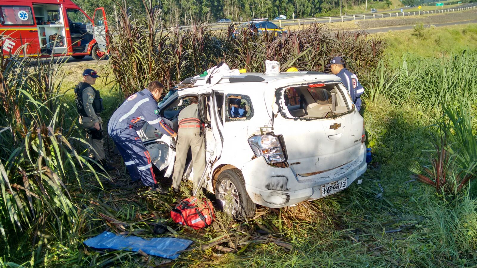 O veículo Spin pertence à prefeitura de Pontão. Segundo a Polícia Rodoviária Federal, havia seis ocupantes no carro.