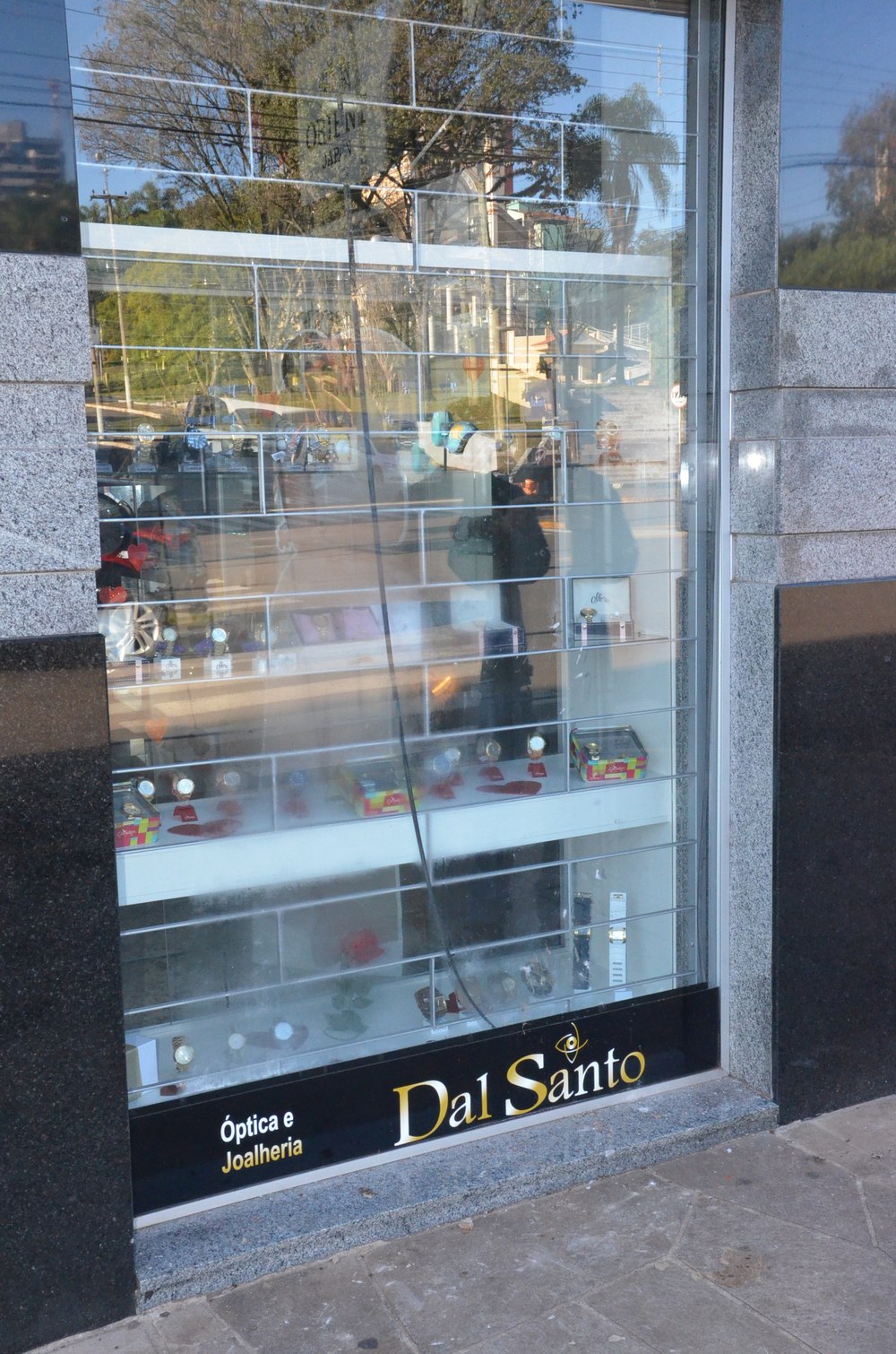 danificada com uma pedra, bem como as câmeras de monitoramento haviam sido